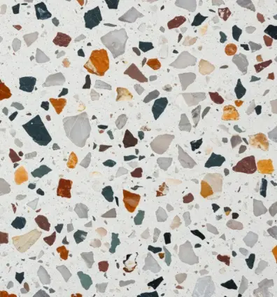 테라조는 예전 일본말로 도까다시라고 많이 불렸던 무늬로 과거 학교 복도에 많이 시공되던 스타일이다. 대리석, 석영, 유리, 조약돌 등 천연 또는 재활용 파편을 시멘트나 에폭시 수지에 섞어 굳힌 후, 표면을 연마하여 완성한 마감재인데 타일 형태로도 제작되고 있다.