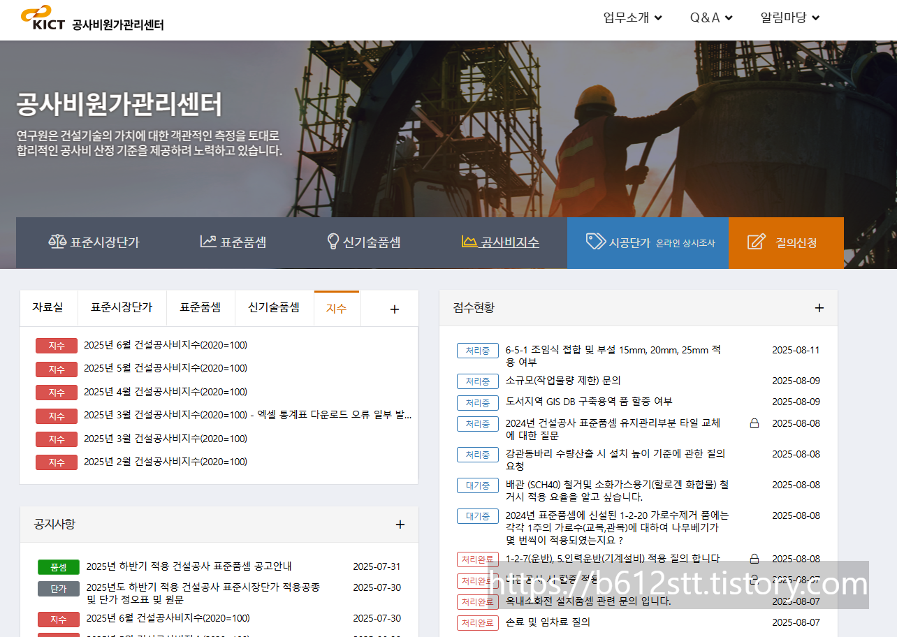 >>한국건설기술원 홈페이지, 자료실 게시판에 매 전월 건설공사비지수를 게재하고 있으니 참고 바랍니다.