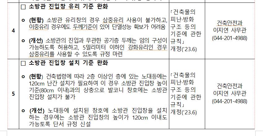 2. 소방관 진입창 설치기준 규제개선 건의사항