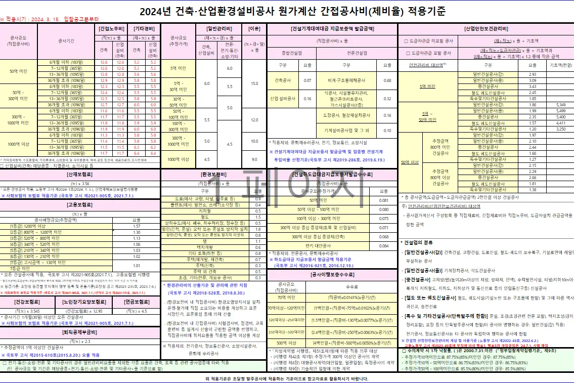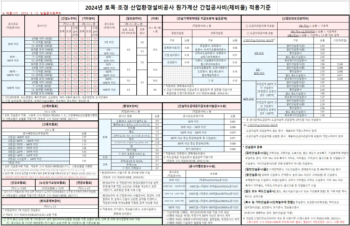 * 2024년 3월 15일자 변경내용은 간접노무비율, 기타경비율이다.