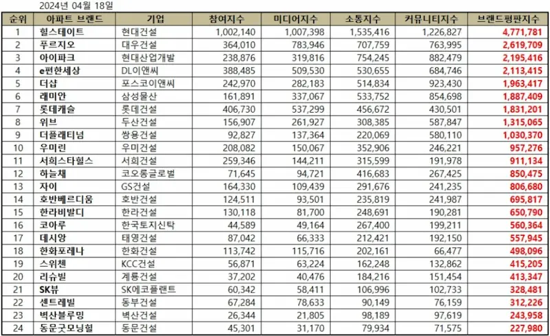 <2024년 4월 아파트 브랜드 순위>