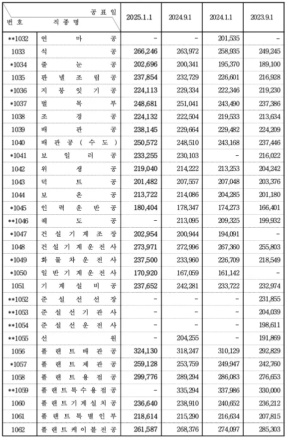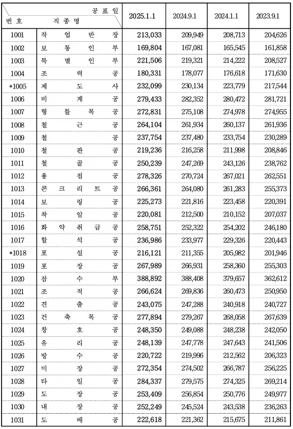 대한건설협회의 2025년 1월 1일부터 적용되는 상반기 노임단가가 발표되었다. 2025년 상반기 전체 직종 평균 노임이 기존 274,286원에서 276,020원 상승하였다. 공공건축물 건립을 위해서는 가장 최근 노임을 설계에 적용해야 하니 참고 바란다.